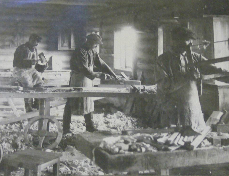 Carpentry workshop in a labour village. Photo from an album produced by the NKVD on the construction of a village by peasants who were victims of dekulakisation. (Photograph, Anonymous, 1936). Source: Archives of the UVD of the Arkhangelsk Region.