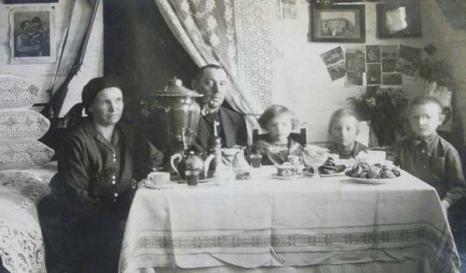 The image of a family in their Sunday best sitting around a well-decked table is a perfect allegory of social achievement. Less successfully posed are the portraits of individuals raised to the rank of “Stakhanovite” for having learnt a skill during their re-education. Don’t these rare photographs of A.R. Berfort and A.P. Lavrentev, looking like recently arrested prisoners, belie the NKVD’s message?