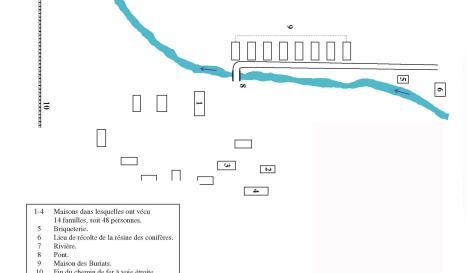 План не существующего сегодня пос. Хутор (Бурятия), по рисунку Римгаудаса Рузгиса (Рисунок, Анонимный, 2011). Источник: Личный архив Римгаудаса Рузгиса.
